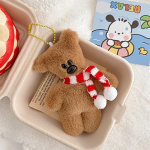 Мягкий брелок "Мишка" красно-белый шарф