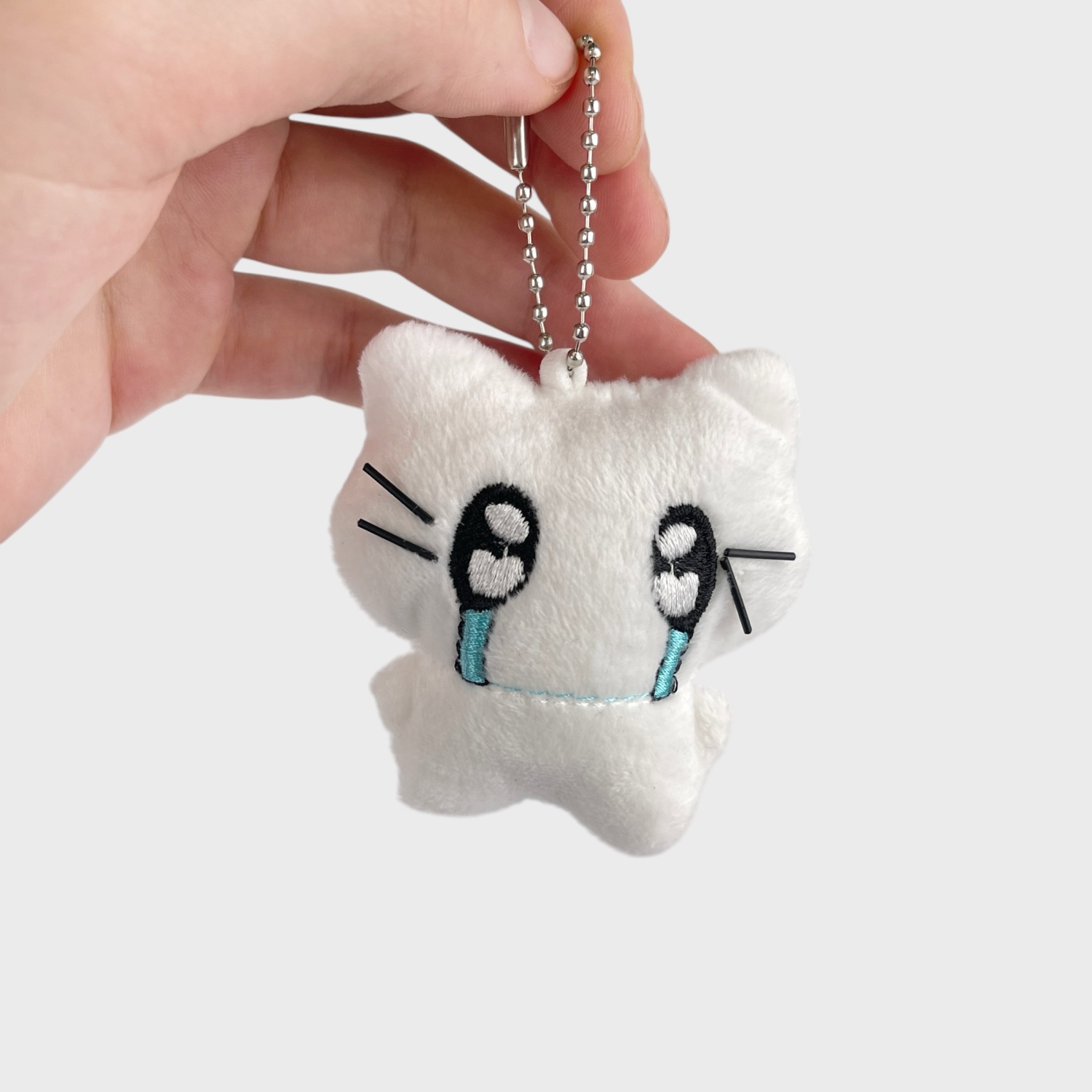 Мягкий брелок "Белый котик" плачущий