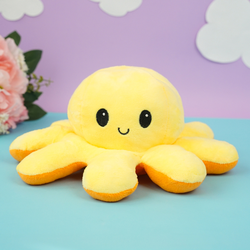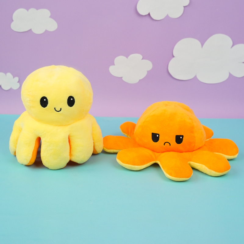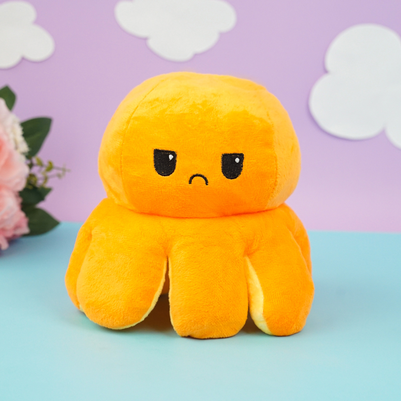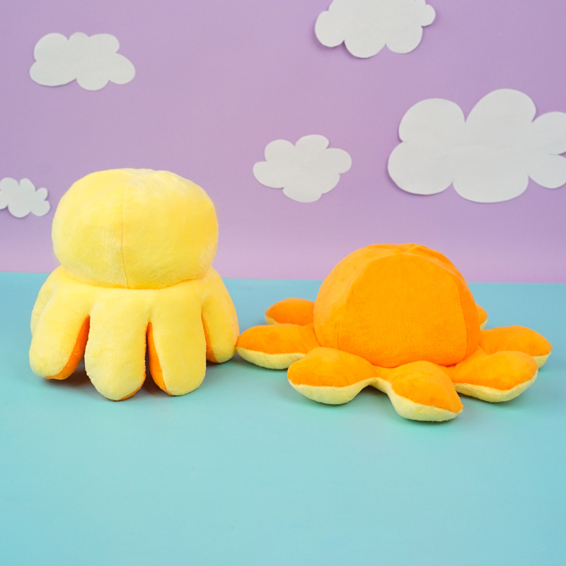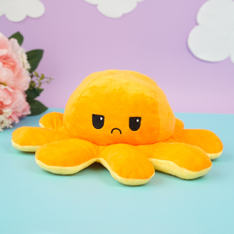 Мягкая игрушка-перевертыш "Осьминожек" желтый-оранжевый, 30см