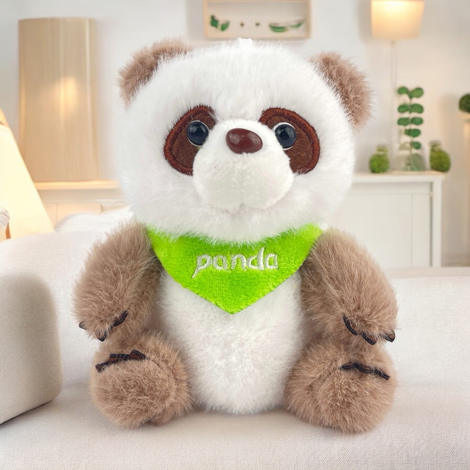 Мягкая игрушка "Коричневая Панда" зеленый шарфик, 13см