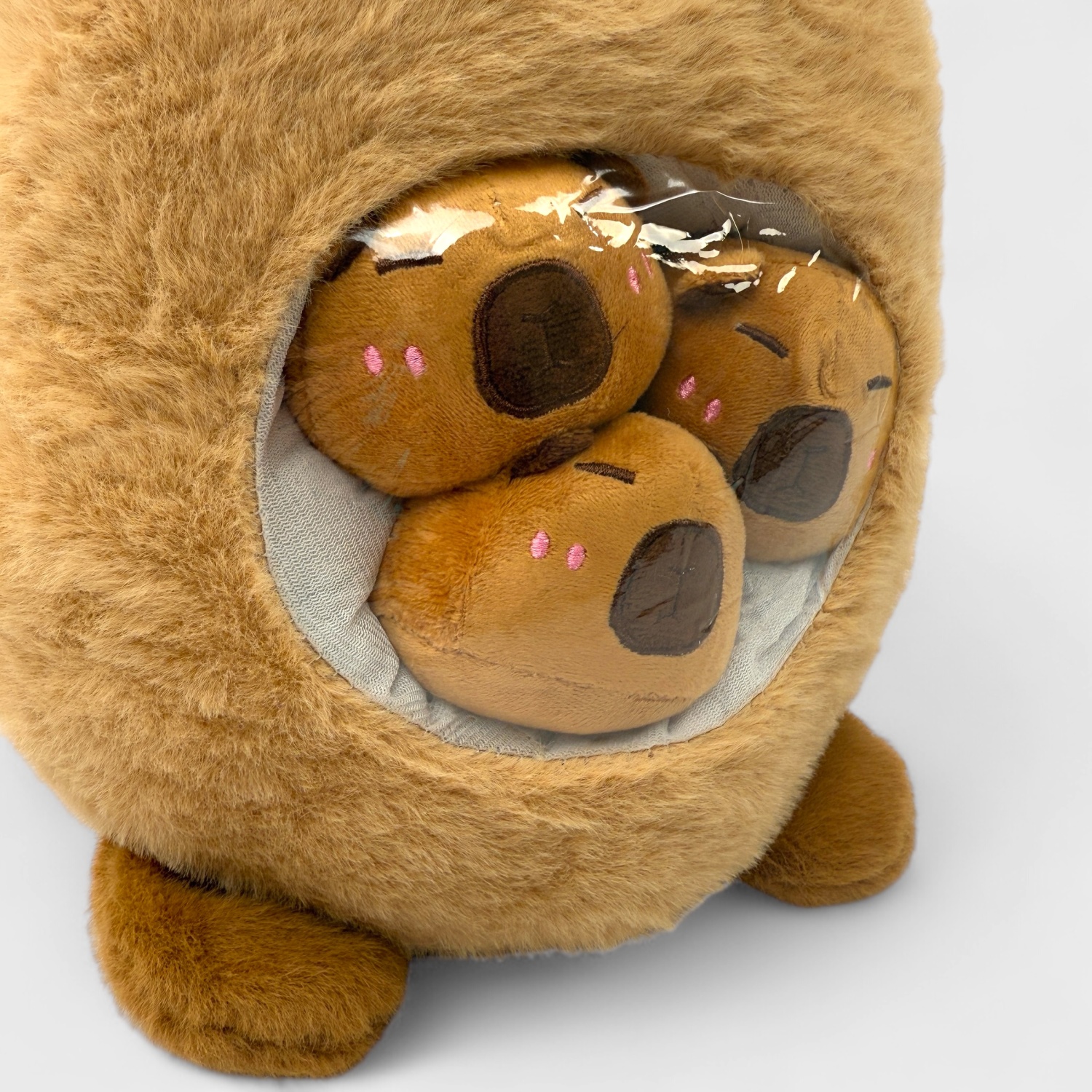 Мягкая игрушка "Мама капибара" 3 капибаренка, 30см