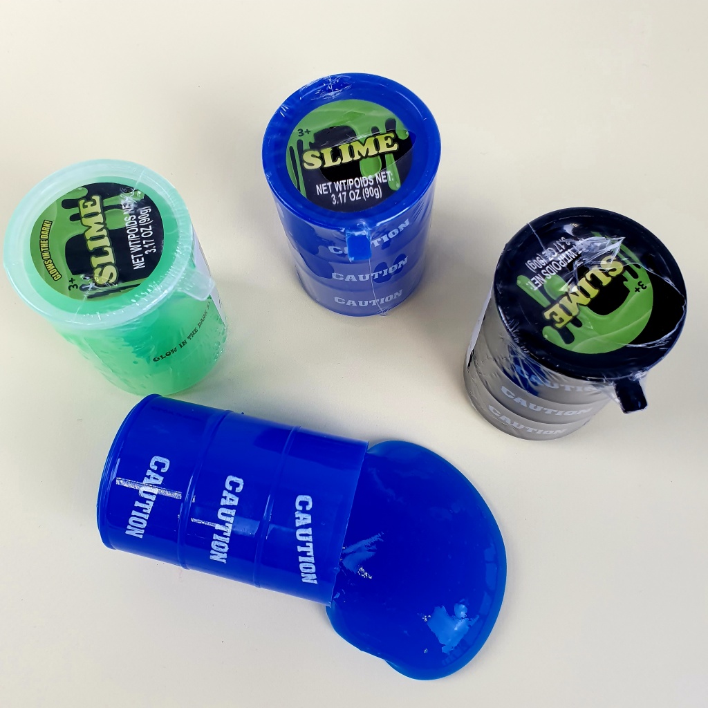 Слайм напоминает желеообразное вещество. Оно имеет свойство не разваливаться и легко собираться в исходное состояние. Хорошо растягивается, делится на отдельные кусочки. При этом не липнет к рукам, не пачкает, имеет разнообразные яркие цвета и приятный аромат. Слайм каждого оттенка упакован в отдельную баночку. Либо в одной таре лежит один разноцветный. В качестве наполнителя могут использоваться пенопластовые шарики. Они в процессе разминания цокают и хрустят.