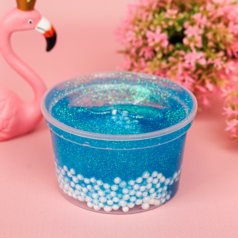 Слайм "Стекло" с голубыми блестками, с шариками, 200 гр.