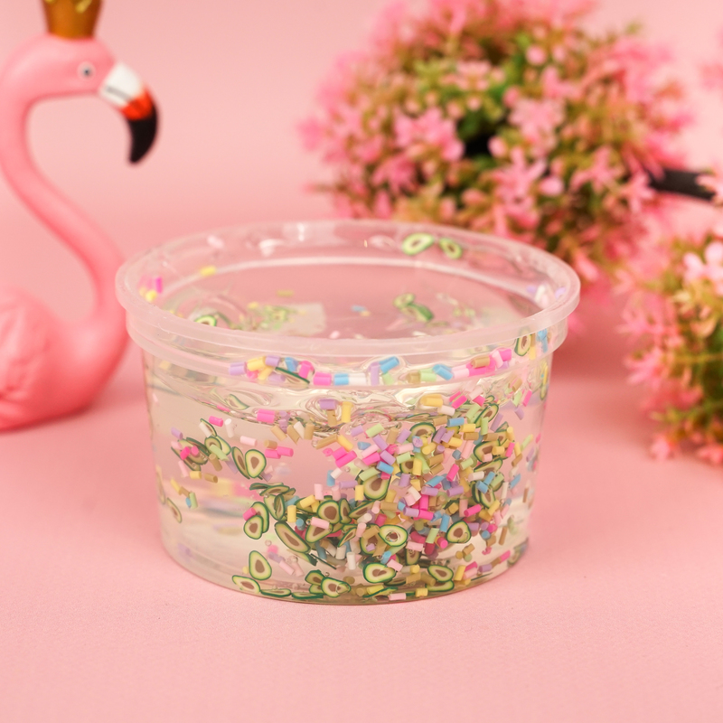 Слайм "Стекло" бесцветный, с наполнителем конфетти + авокадо, 200 гр.