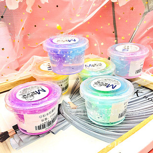 Слайм напоминает желеообразное вещество. Оно имеет свойство не разваливаться и легко собираться в исходное состояние. Хорошо растягивается, делится на отдельные кусочки. При этом не липнет к рукам, не пачкает, имеет разнообразные яркие цвета и приятный аромат. Слайм каждого оттенка упакован в отдельную баночку. Либо в одной таре лежит один разноцветный. В качестве наполнителя могут использоваться пенопластовые шарики. Они в процессе разминания цокают и хрустят.