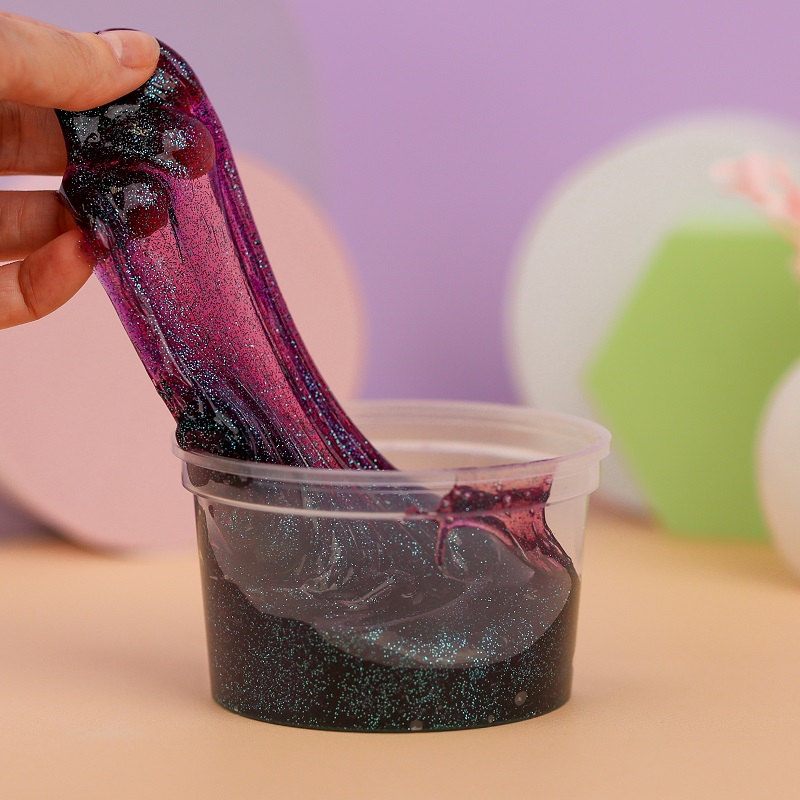 Слайм напоминает желеообразное вещество. Оно имеет свойство не разваливаться и легко собираться в исходное состояние. Хорошо растягивается, делится на отдельные кусочки. При этом не липнет к рукам, не пачкает, имеет разнообразные яркие цвета и приятный аромат. Слайм каждого оттенка упакован в отдельную баночку. Либо в одной таре лежит один разноцветный. В качестве наполнителя могут использоваться пенопластовые шарики. Они в процессе разминания цокают и хрустят.