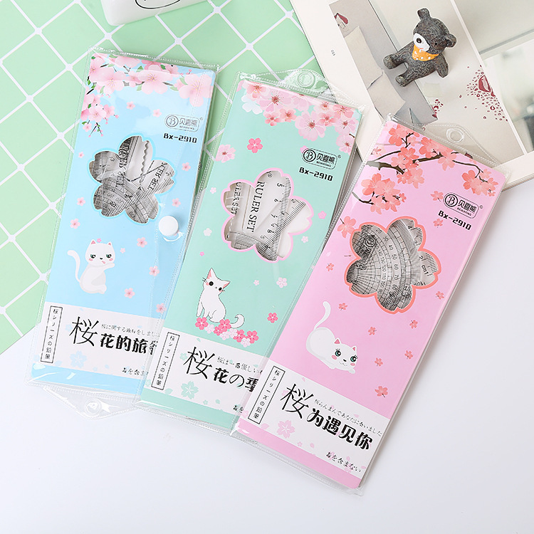 Набор линеек "Котик и сакура" №22910, 4шт, в ассортименте 1 набор