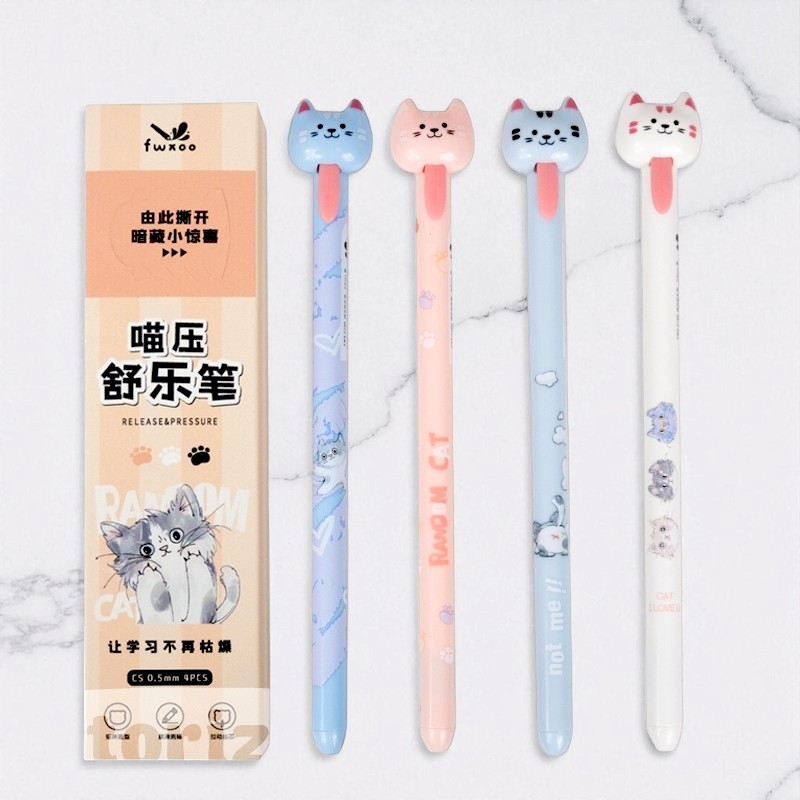 Набор ручек гелевых "Котик с галстуком" №6100, в ассортименте 4шт (черный)