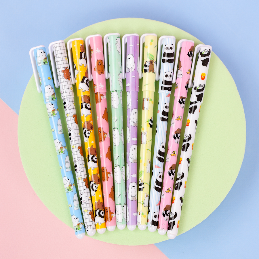 Есть интересные виды ручек с оригинальным дизайном: с десятью стержнями, светящиеся и в виде долек арбуза, зайчиков, с помпонами-розовые фламинго. Материал, из которого они сделаны, чаще всего это прочная цветная или прозрачная пластмасса. Она держит удар, не ломается и не гнется.