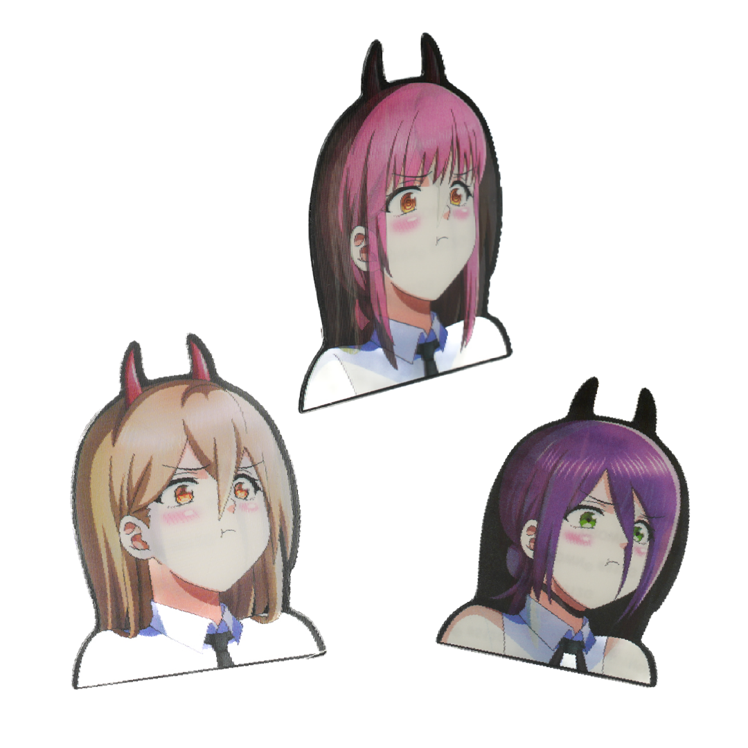 Наклейка голографическая "Человек Бензопила" 3D, №04