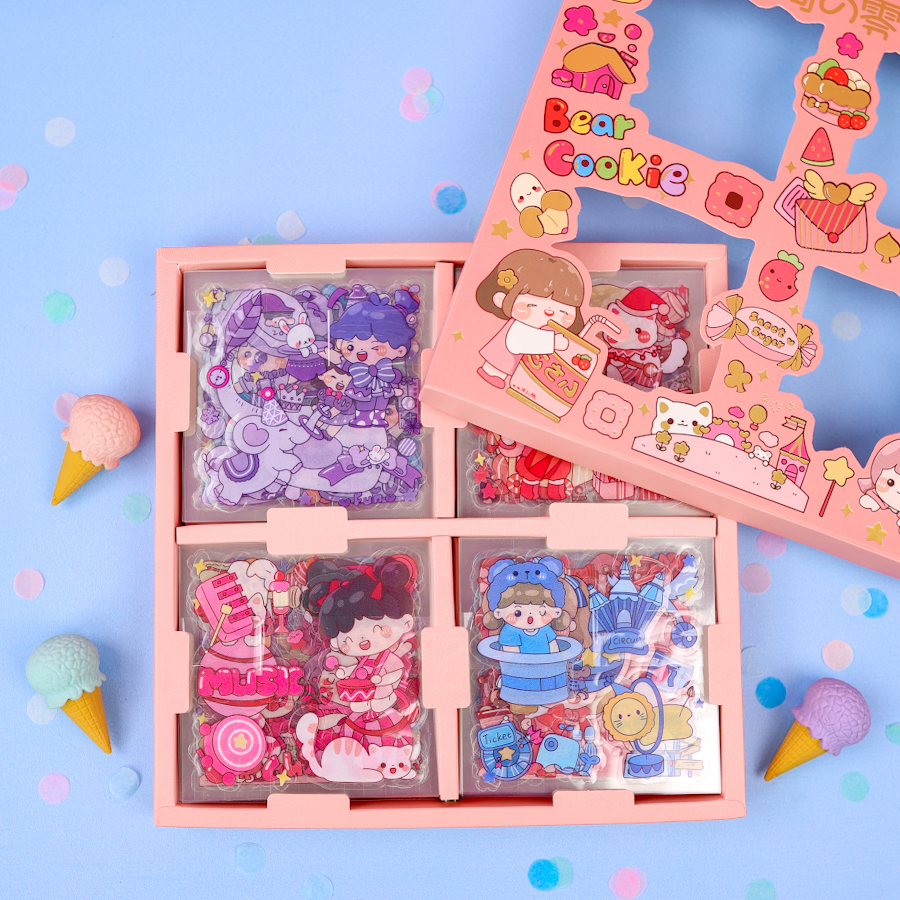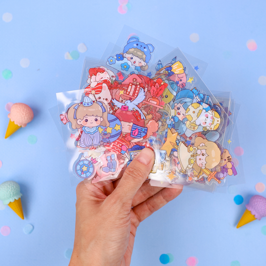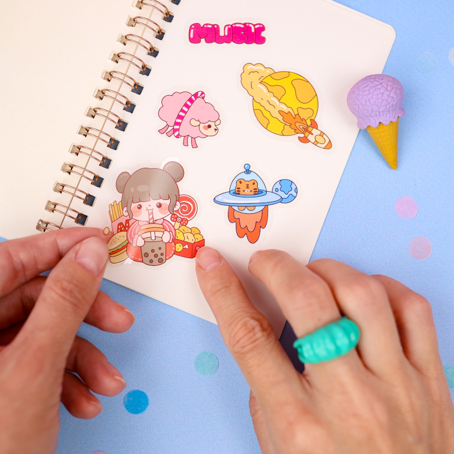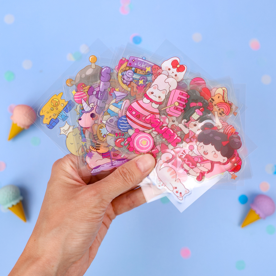 Анимированные наклейки используются в детском творчестве. Они развивают усидчивость, внимание, мелкую моторику рук ребенка. Выпускаются в больших наборах либо в единичных экземплярах для мальчиков и девочек. Обычно набор является тематическим: животные, овощи, цифры и буквы, персонажи из сказки или мультфильма и многие другие.