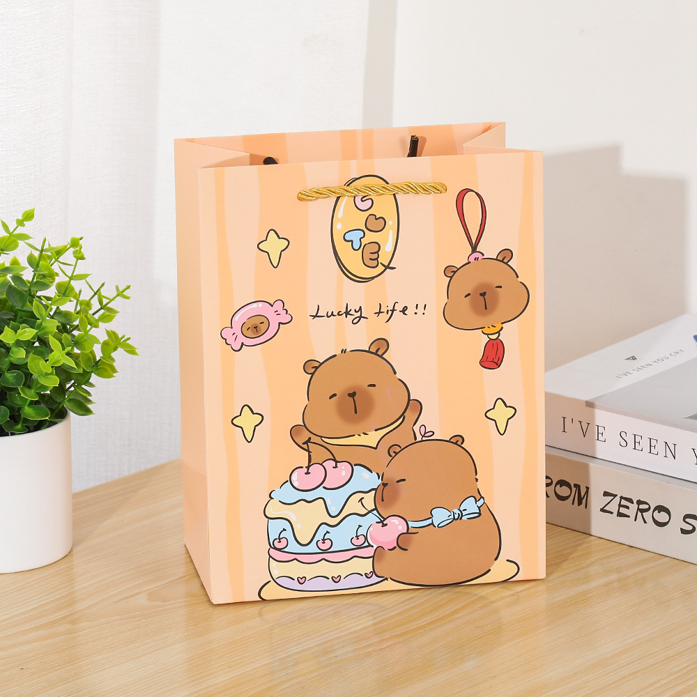 Подарочный пакет "Lucky life" капибара, бежевый 32х26х12 L