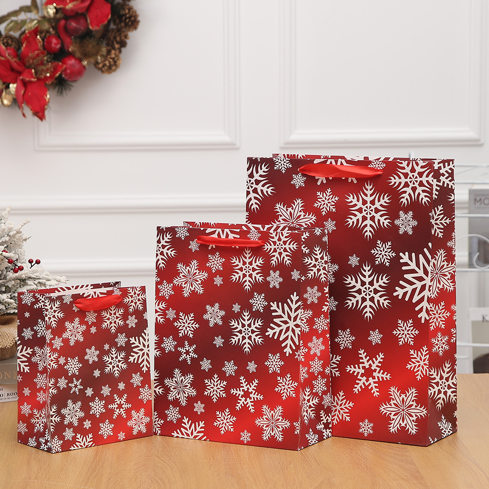Подарочный пакет "НГ Снежинки" красный 25х11х32см
