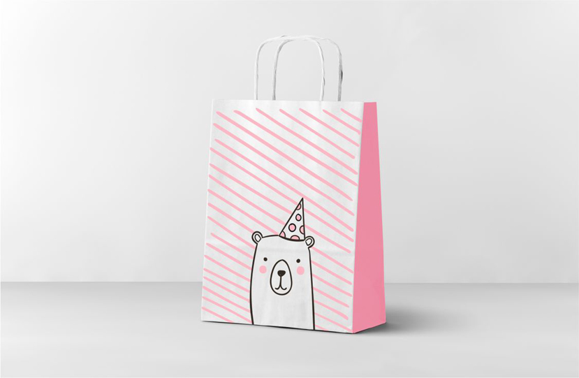 Пакет подарочный "Мишка" розовый 24х10,5х32