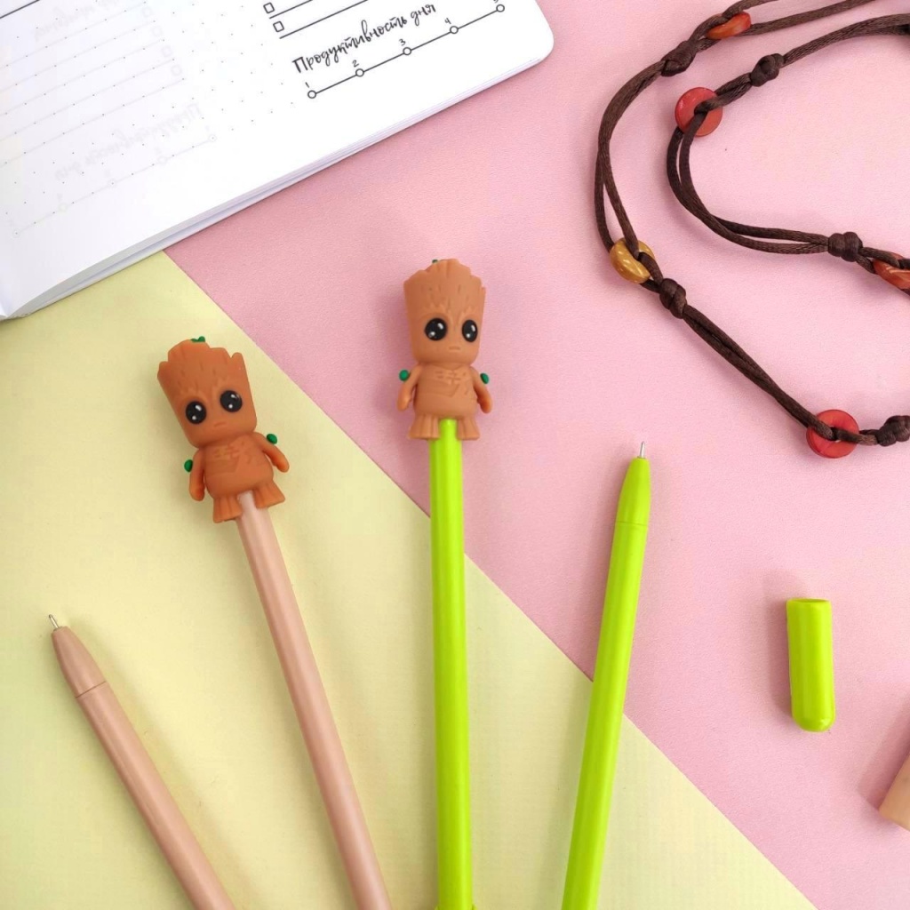 Есть интересные виды ручек с оригинальным дизайном: с десятью стержнями, светящиеся и в виде долек арбуза, зайчиков, с помпонами-розовые фламинго. Материал, из которого они сделаны, чаще всего это прочная цветная или прозрачная пластмасса. Она держит удар, не ломается и не гнется.