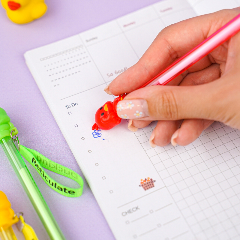 Есть интересные виды ручек с оригинальным дизайном: с десятью стержнями, светящиеся и в виде долек арбуза, зайчиков, с помпонами-розовые фламинго. Материал, из которого они сделаны, чаще всего это прочная цветная или прозрачная пластмасса. Она держит удар, не ломается и не гнется.