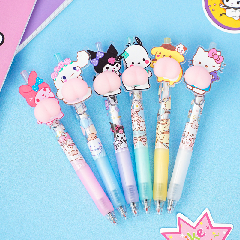 Есть интересные виды ручек с оригинальным дизайном: с десятью стержнями, светящиеся и в виде долек арбуза, зайчиков, с помпонами-розовые фламинго. Материал, из которого они сделаны, чаще всего это прочная цветная или прозрачная пластмасса. Она держит удар, не ломается и не гнется.