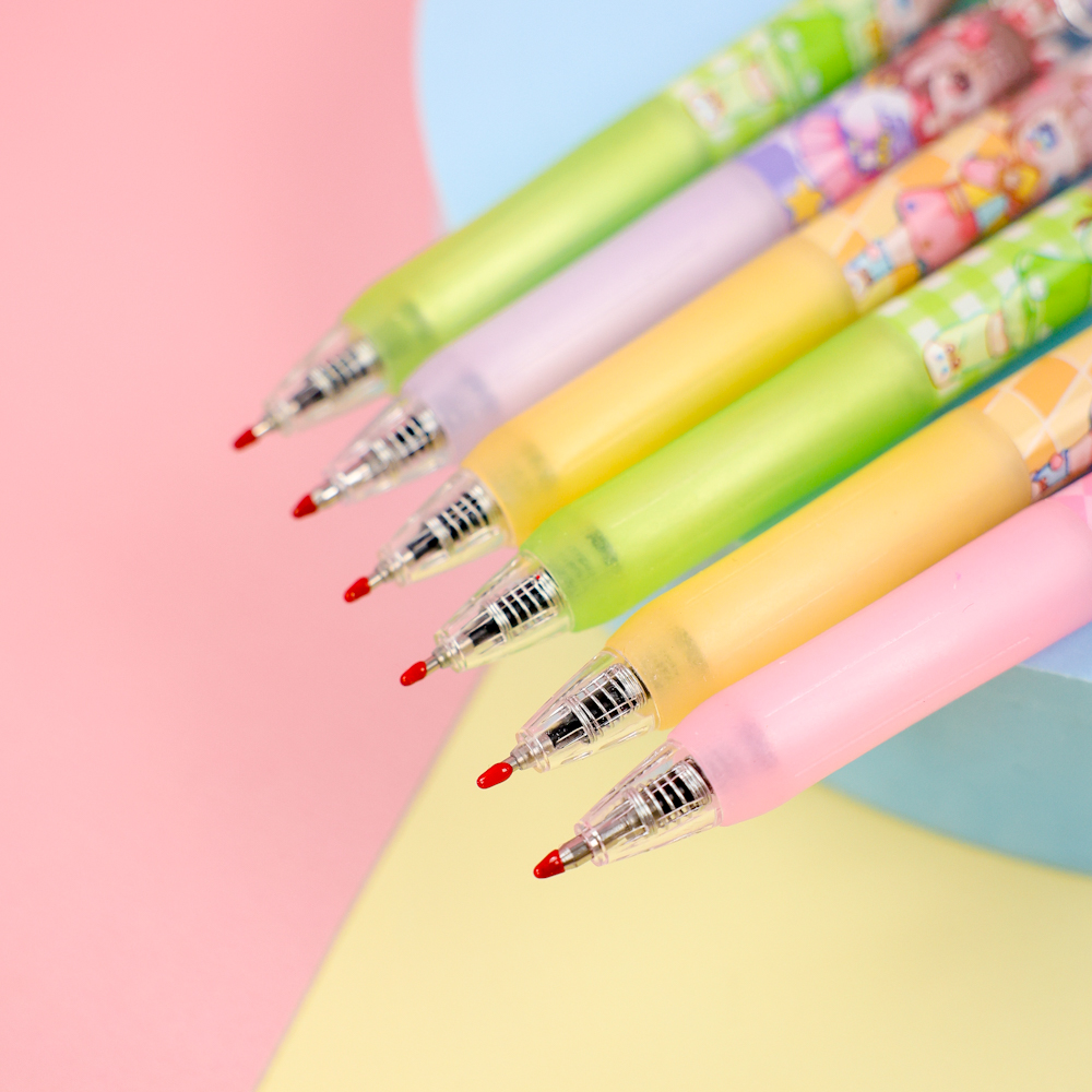 Есть интересные виды ручек с оригинальным дизайном: с десятью стержнями, светящиеся и в виде долек арбуза, зайчиков, с помпонами-розовые фламинго. Материал, из которого они сделаны, чаще всего это прочная цветная или прозрачная пластмасса. Она держит удар, не ломается и не гнется.