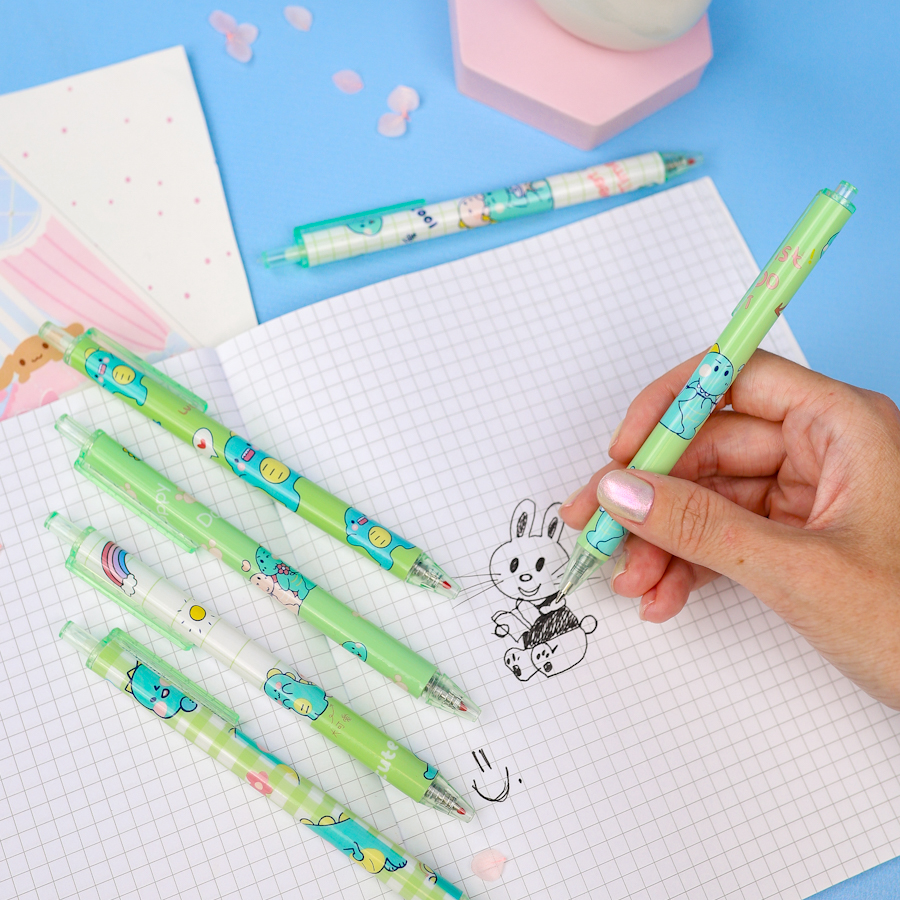Есть интересные виды ручек с оригинальным дизайном: с десятью стержнями, светящиеся и в виде долек арбуза, зайчиков, с помпонами-розовые фламинго. Материал, из которого они сделаны, чаще всего это прочная цветная или прозрачная пластмасса. Она держит удар, не ломается и не гнется.