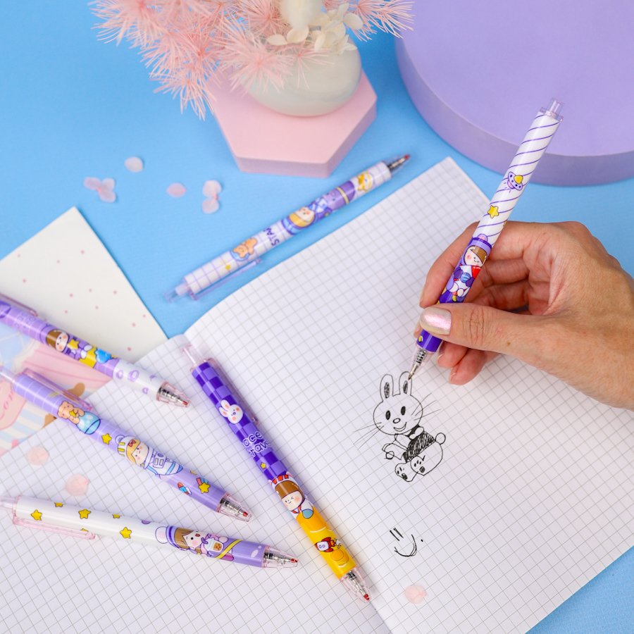 Есть интересные виды ручек с оригинальным дизайном: с десятью стержнями, светящиеся и в виде долек арбуза, зайчиков, с помпонами-розовые фламинго. Материал, из которого они сделаны, чаще всего это прочная цветная или прозрачная пластмасса. Она держит удар, не ломается и не гнется.
