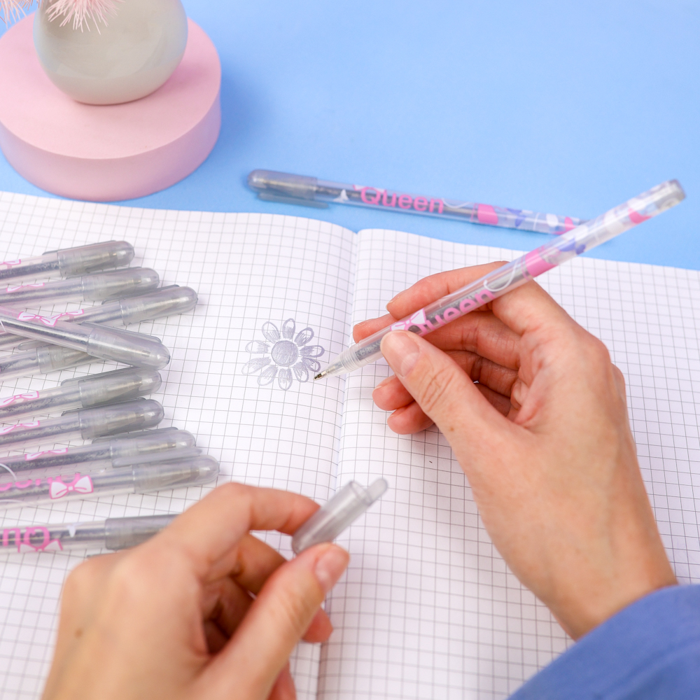 Есть интересные виды ручек с оригинальным дизайном: с десятью стержнями, светящиеся и в виде долек арбуза, зайчиков, с помпонами-розовые фламинго. Материал, из которого они сделаны, чаще всего это прочная цветная или прозрачная пластмасса. Она держит удар, не ломается и не гнется.