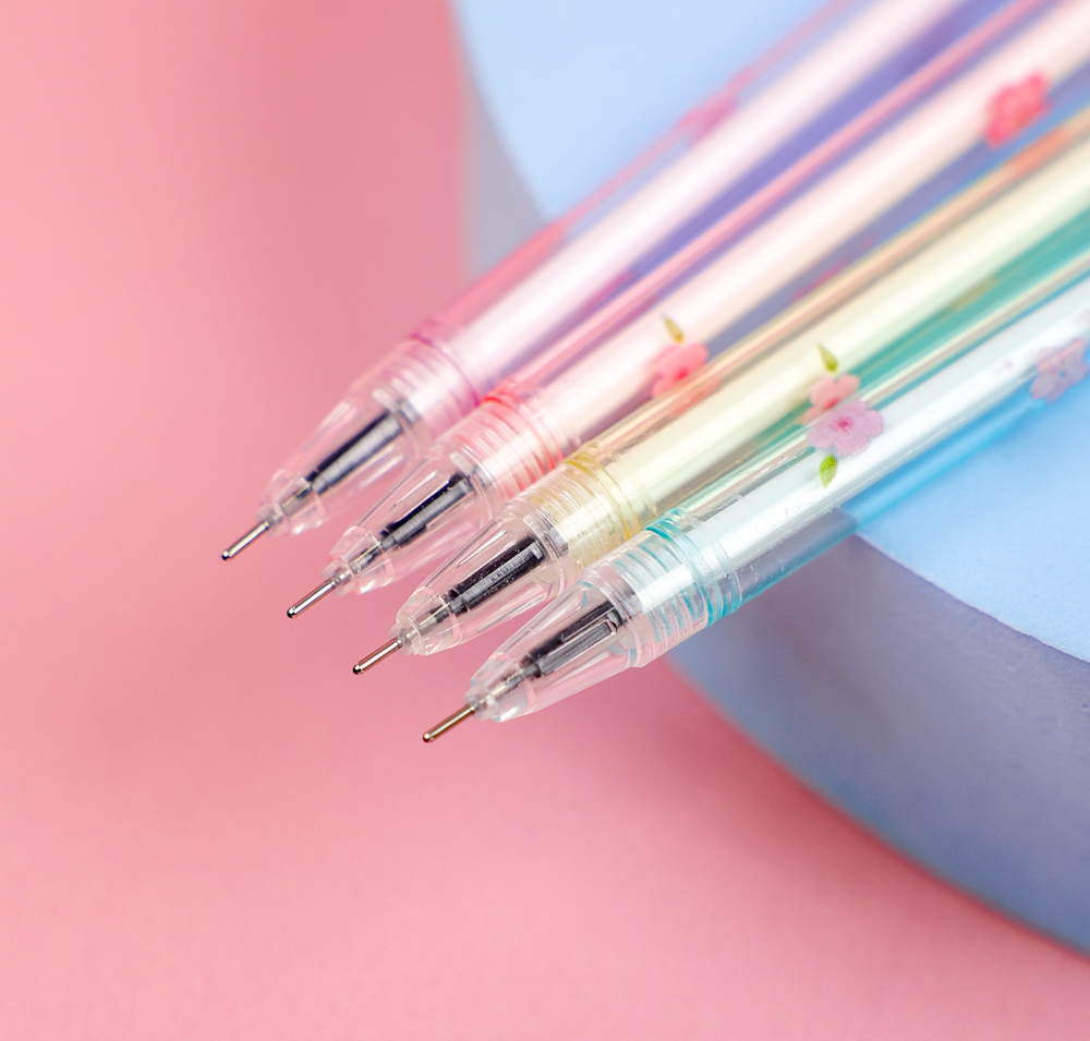 Есть интересные виды ручек с оригинальным дизайном: с десятью стержнями, светящиеся и в виде долек арбуза, зайчиков, с помпонами-розовые фламинго. Материал, из которого они сделаны, чаще всего это прочная цветная или прозрачная пластмасса. Она держит удар, не ломается и не гнется.