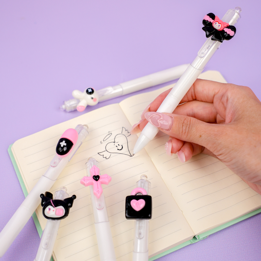 Есть интересные виды ручек с оригинальным дизайном: с десятью стержнями, светящиеся и в виде долек арбуза, зайчиков, с помпонами-розовые фламинго. Материал, из которого они сделаны, чаще всего это прочная цветная или прозрачная пластмасса. Она держит удар, не ломается и не гнется.