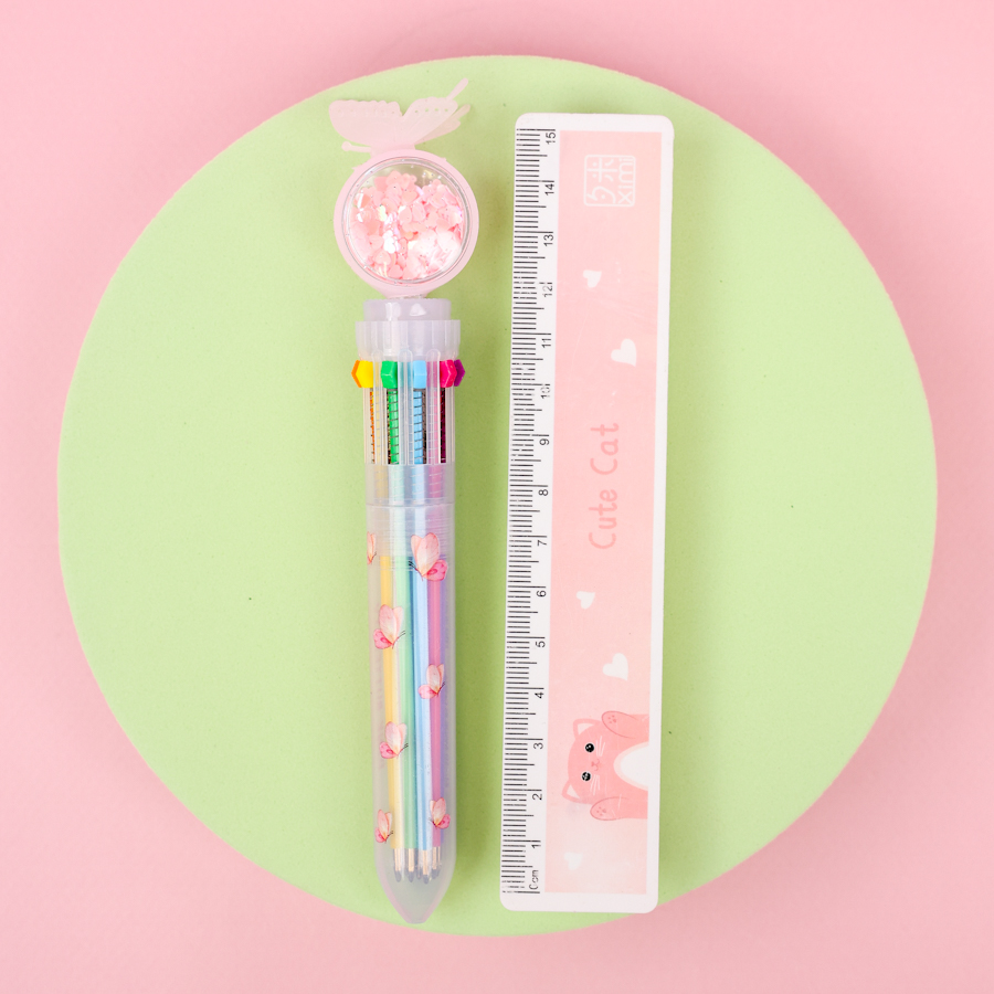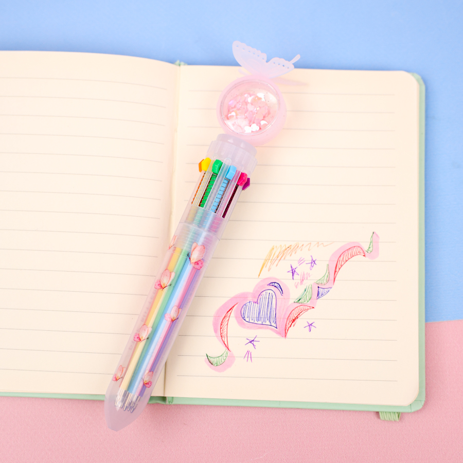 Ручка с десятью стержнями "Butterfly 10в1" розовый