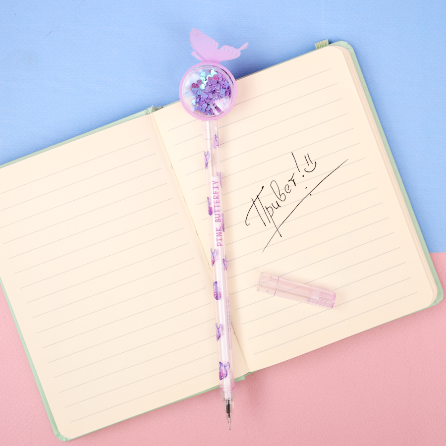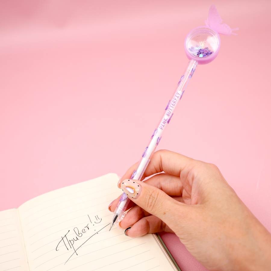 Ручка "Бабочка с блестками" фиолетовый (черный)