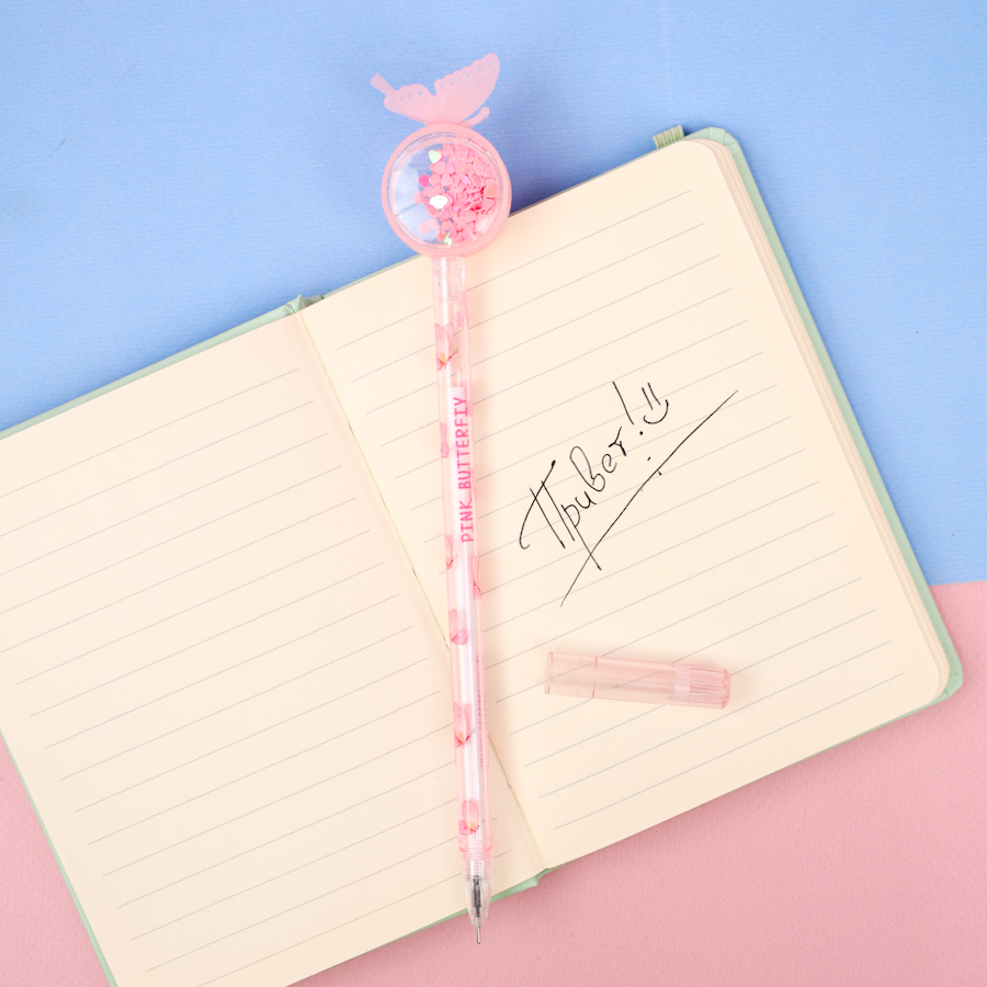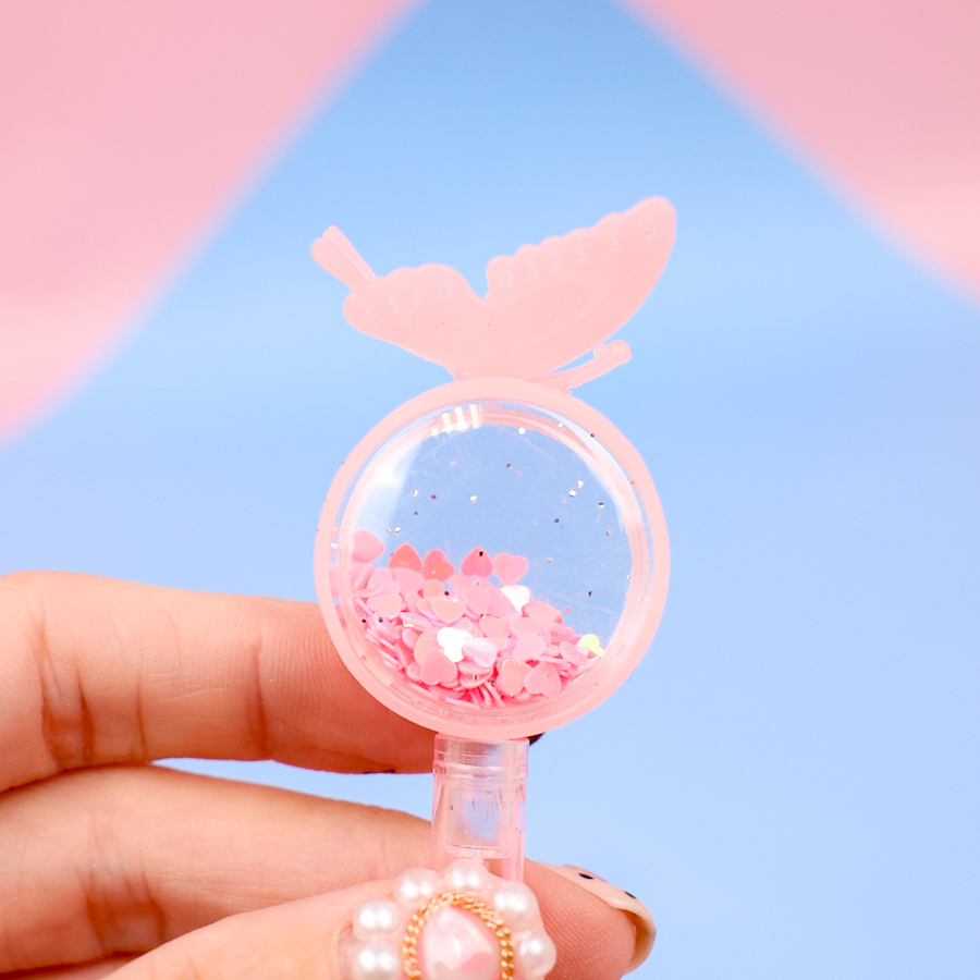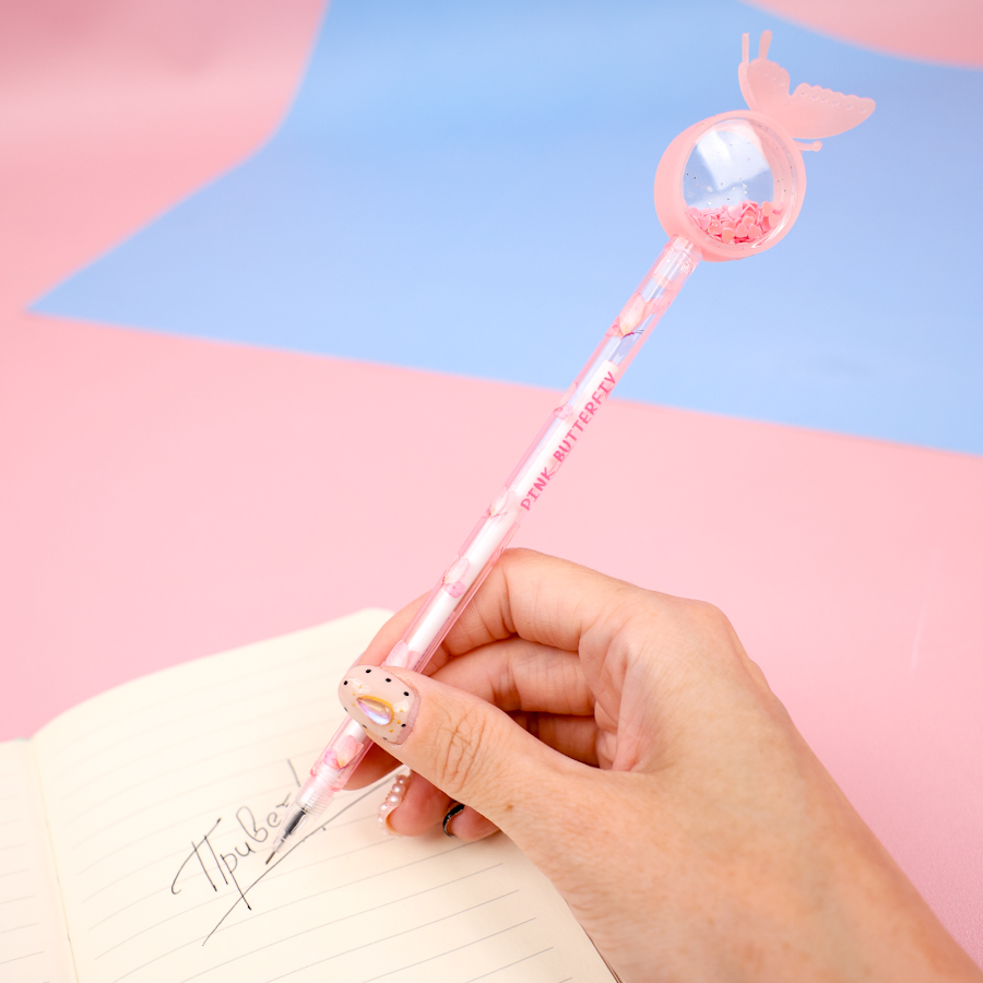 Ручка "Бабочка с блестками" розовый (черный)