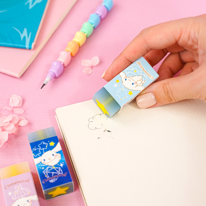 Стирательная резинка не оставит и следа от ваших ошибок. Функцию имеет одну, но видов много. Чаще всего встречается разнообразие по дизайну. Разные формы, яркие цвета поражают воображение. В виде растений, овощей, фруктов и даже фастфуда из Макдоналдса. Есть резинки-трансформеры, которые легко меняют свою форму.