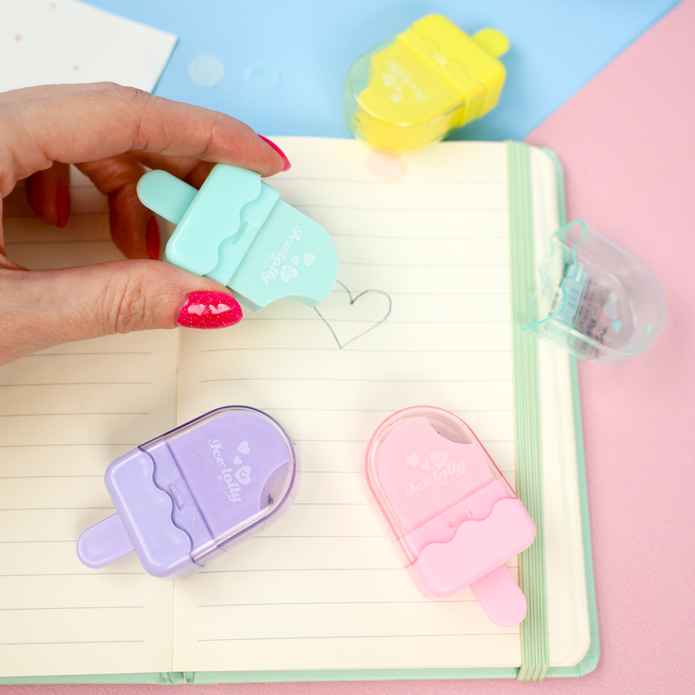 Стирательная резинка не оставит и следа от ваших ошибок. Функцию имеет одну, но видов много. Чаще всего встречается разнообразие по дизайну. Разные формы, яркие цвета поражают воображение. В виде растений, овощей, фруктов и даже фастфуда из Макдоналдса. Есть резинки-трансформеры, которые легко меняют свою форму.