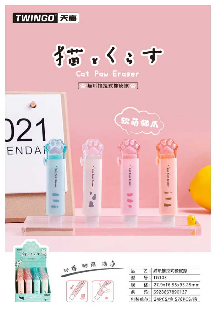 Стирательная резинка "Cat paw", в ассортименте 1шт