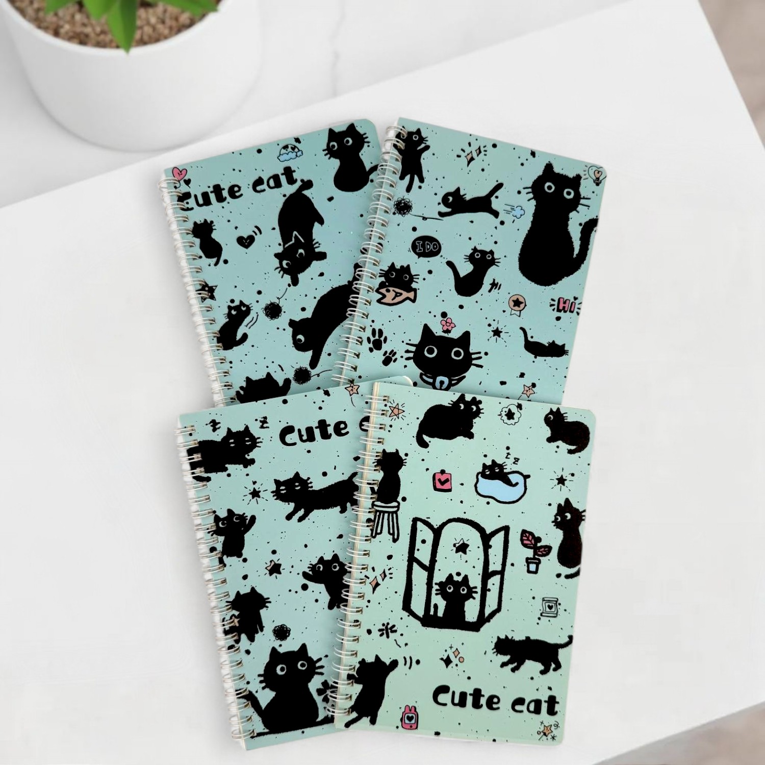 Набор тетрадей на кольцах "Cute cat" черно-голубой, в ассорт-те 4шт