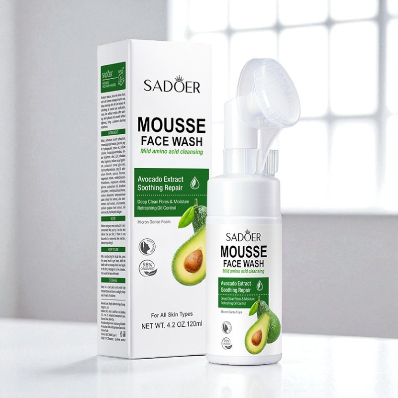 Пенка для умывания "Sadoer" с массажной щеточкой, авокадо, 120мл