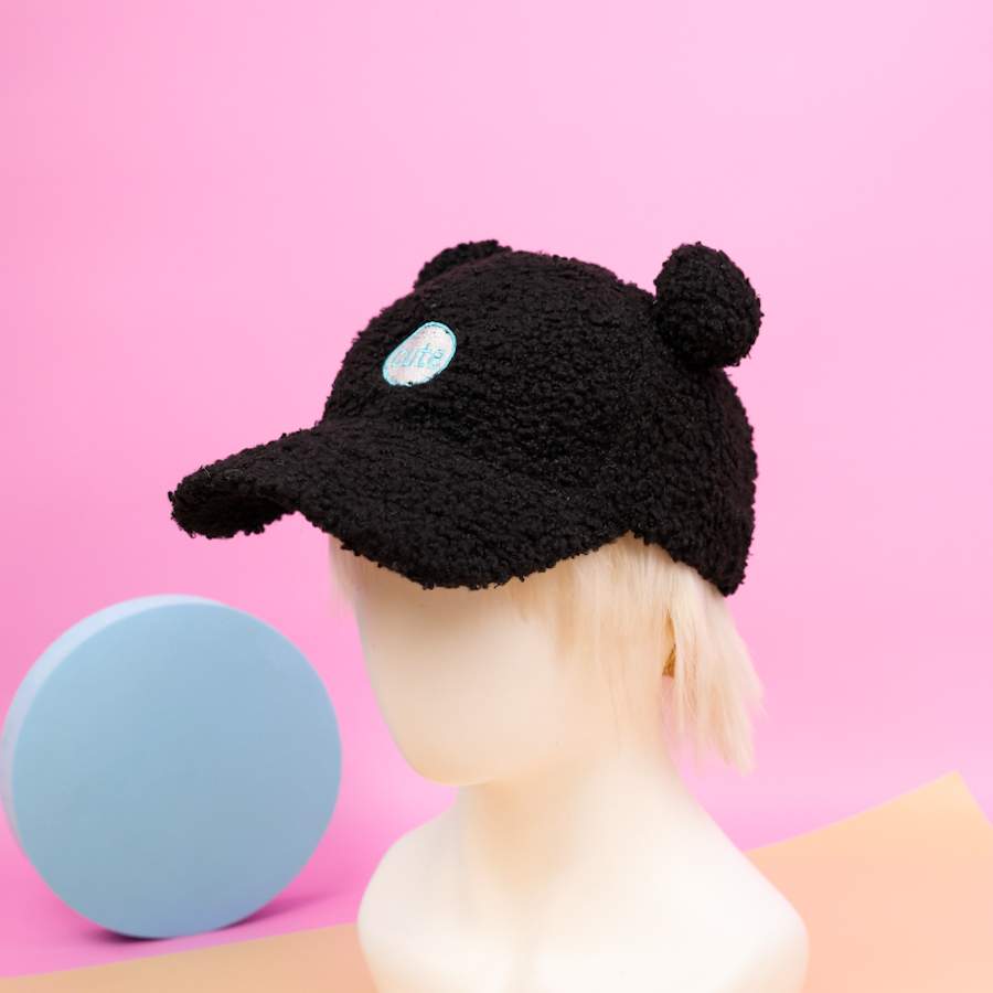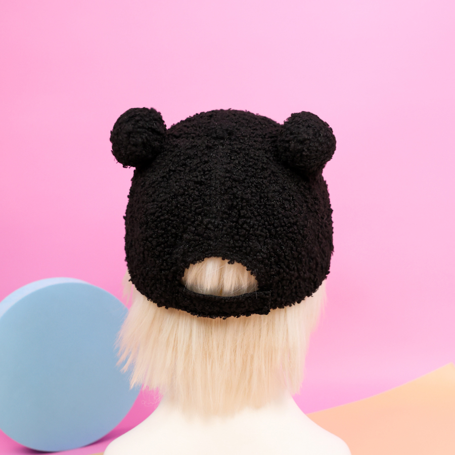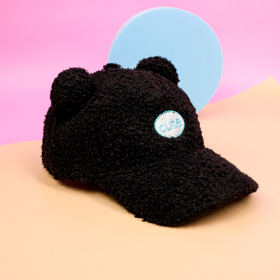 Бейсболка плюшевая "Cute" с ушками, черный (54-60см)