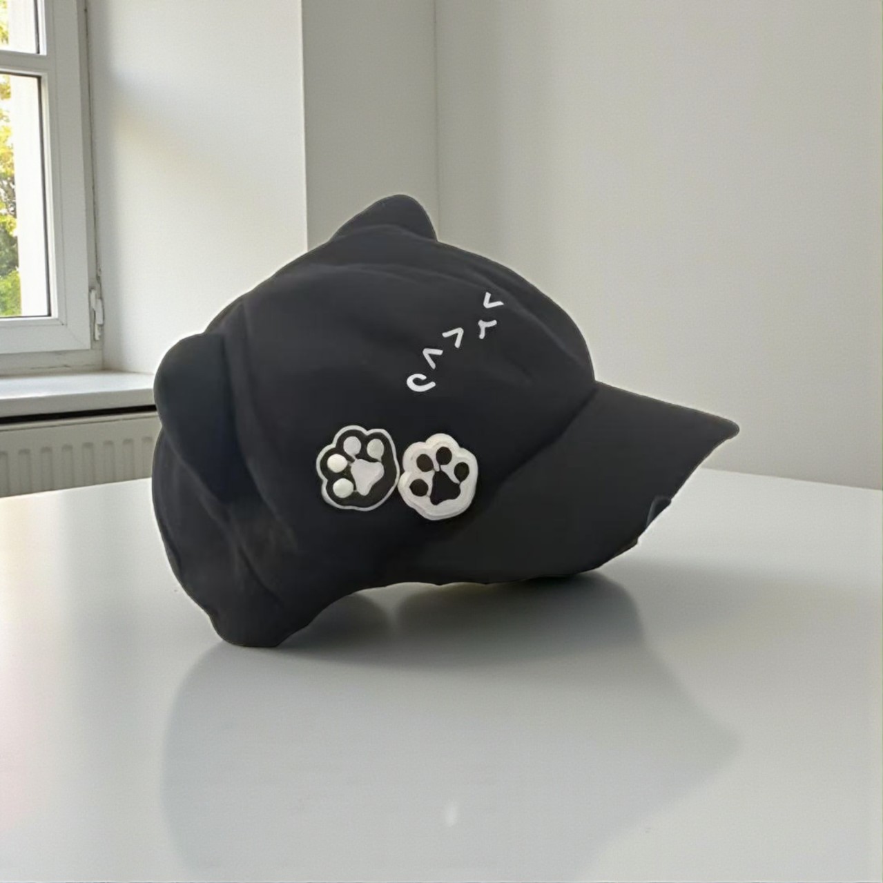 Бейсболка плюшевая "Cats paws" с ушками, черный (55-60см)