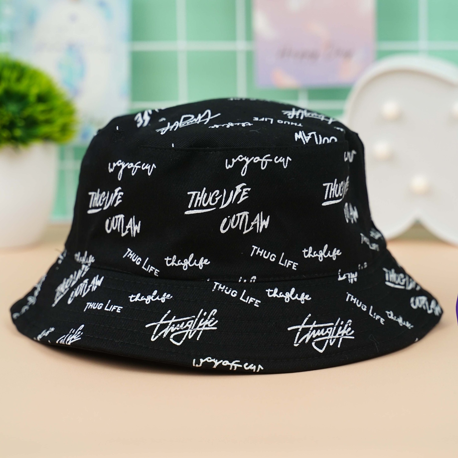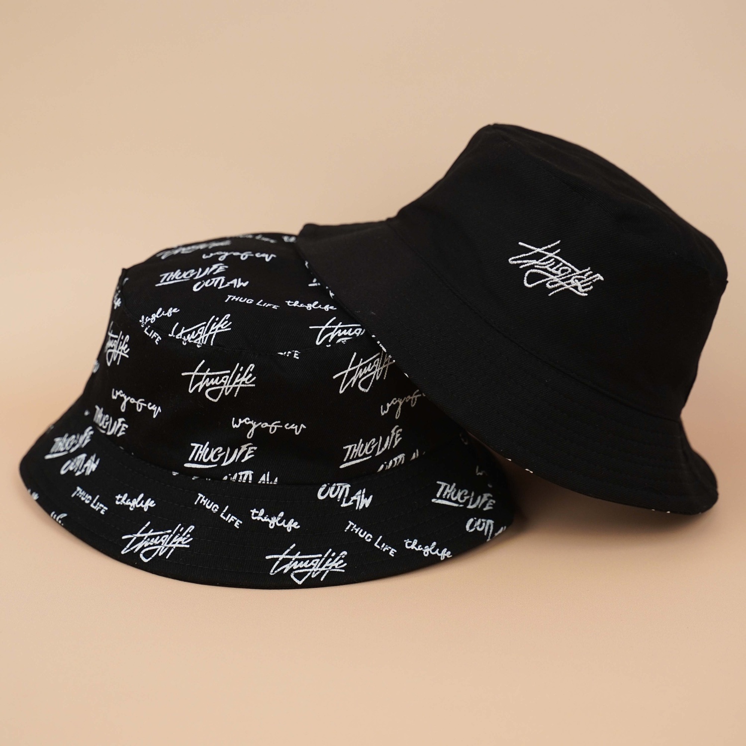 Панама двусторонняя "Thug Life" черный, M (56-58см)