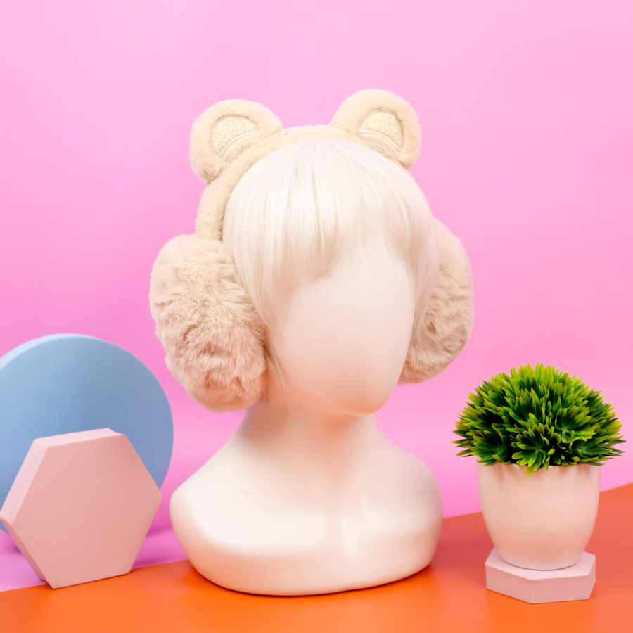 Меховые наушники "Мишка" бежевый