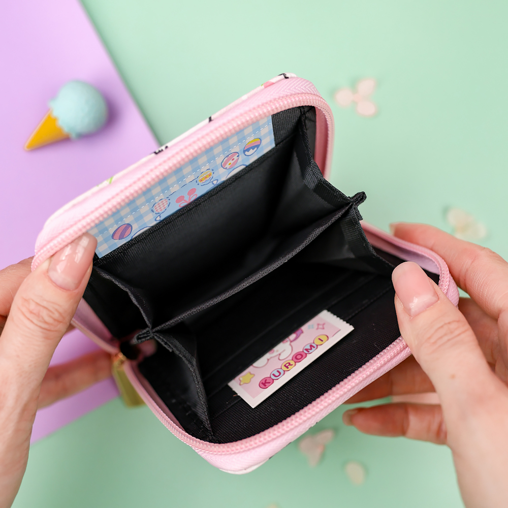 - Мини-кошельки чаще всего являются детскими моделями с ярким необычным дизайном и оригинальным принтом. Декорируются стразами, пайетками, аппликацией, вышивкой в виде сказочных и мультяшных персонажей.