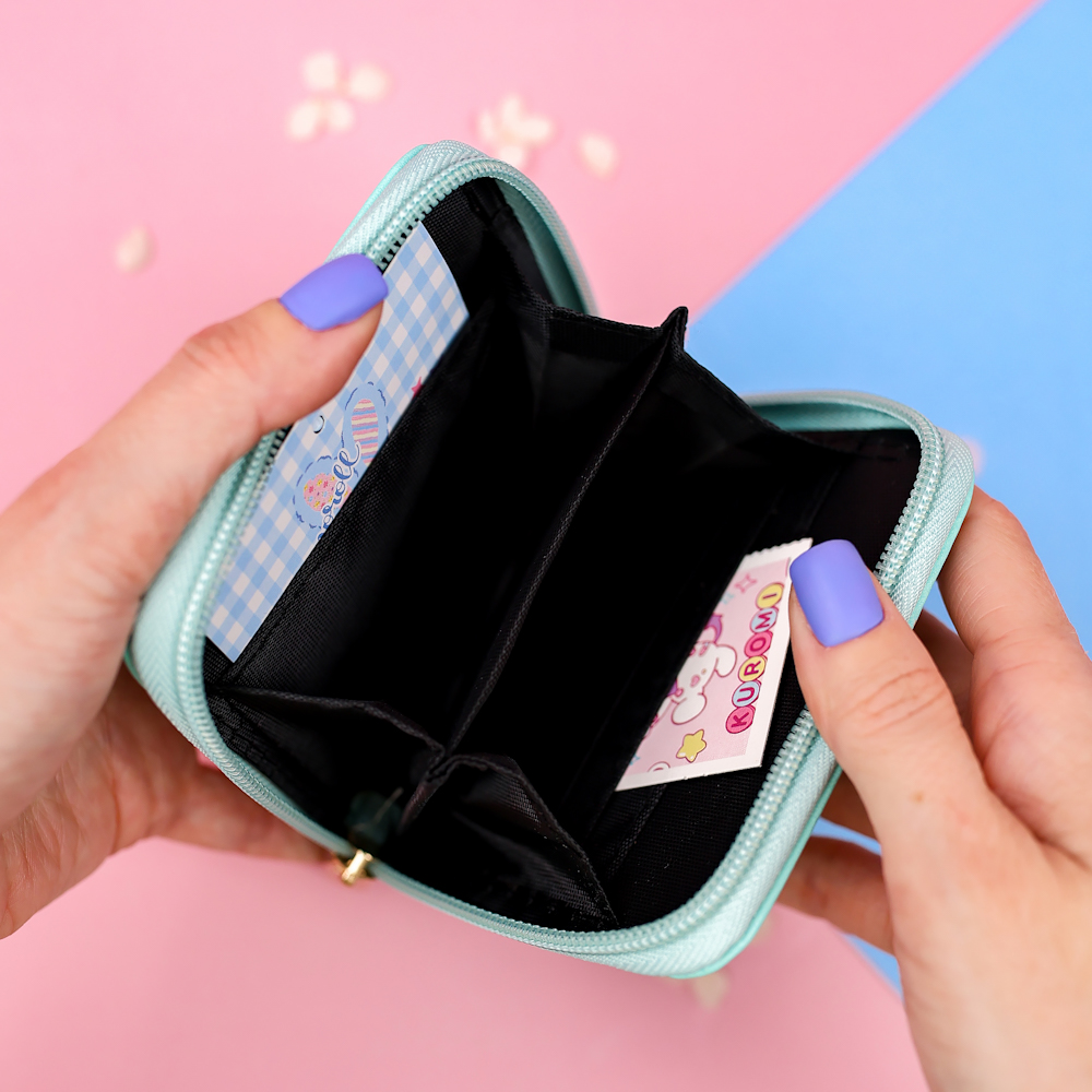 - Мини-кошельки чаще всего являются детскими моделями с ярким необычным дизайном и оригинальным принтом. Декорируются стразами, пайетками, аппликацией, вышивкой в виде сказочных и мультяшных персонажей.