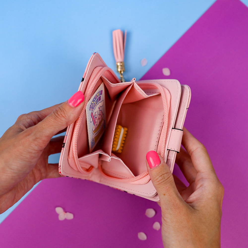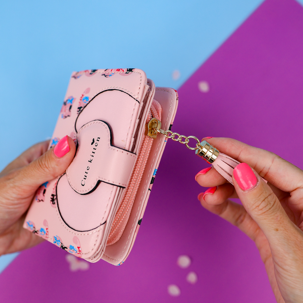 - Мини-кошельки чаще всего являются детскими моделями с ярким необычным дизайном и оригинальным принтом. Декорируются стразами, пайетками, аппликацией, вышивкой в виде сказочных и мультяшных персонажей.