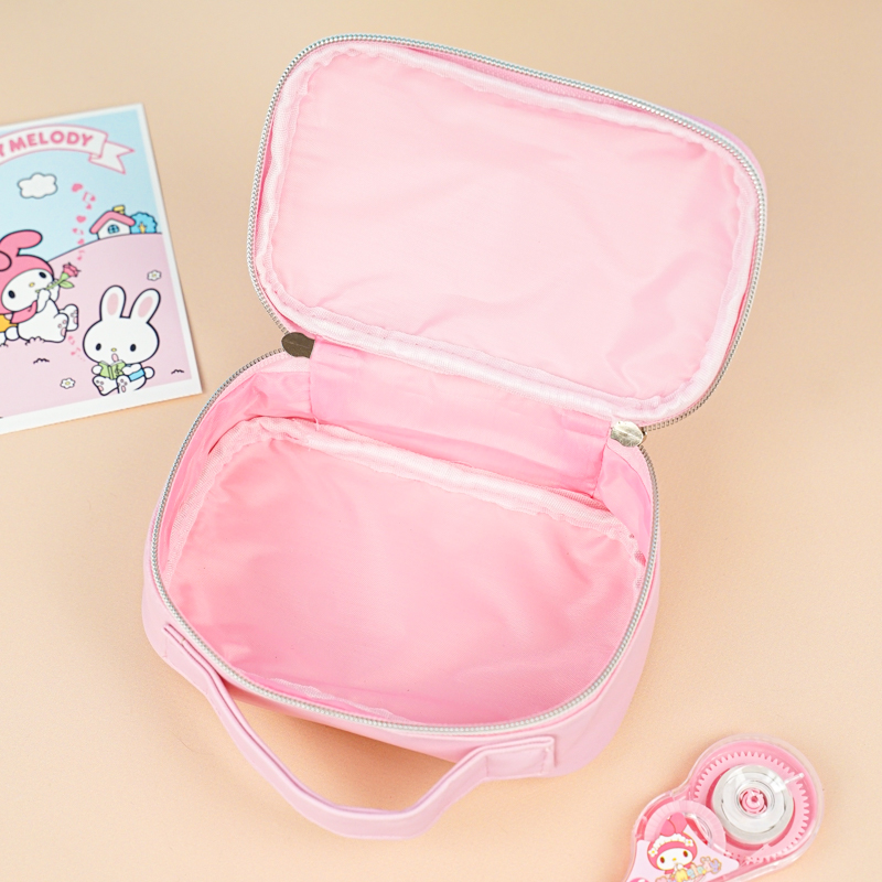- Косметичка-пенал вмещает в себя минимальный набор косметики.