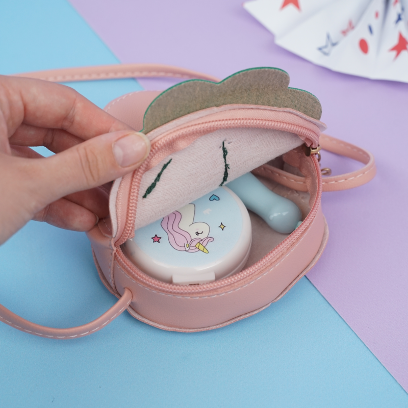 Детские модели сильно отличаются от взрослых по оформлению. Они могут быть в виде фотоаппарата, магнитофона, мордочки сказочного Единорога. Украшаются ягодами вишенки, расшиваются пайетками, модными кожаными вставками. Особенно популярны сумки-мягкая игрушка.